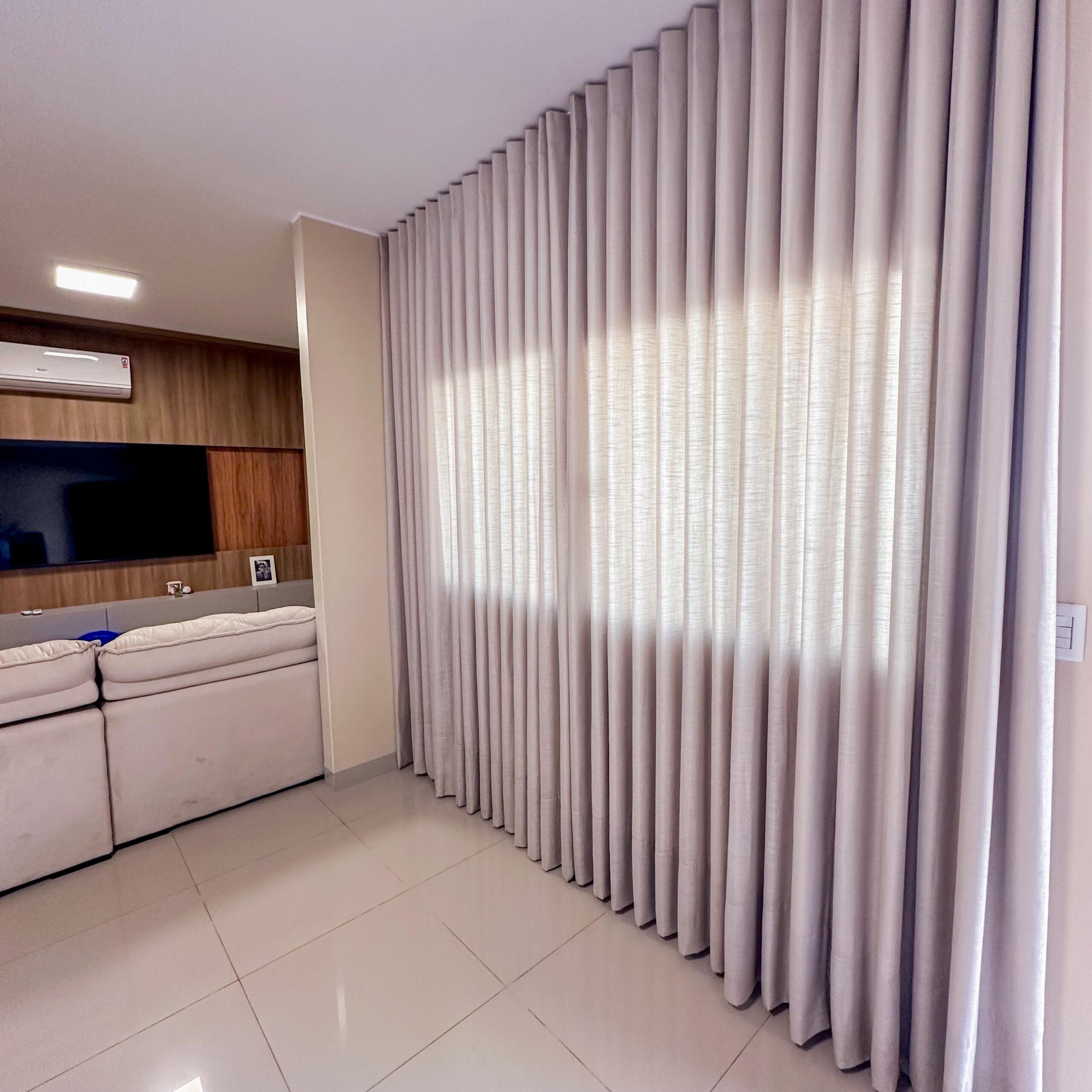 PROFUNDIDADE DO CORTINEIRO: Se sua cortina for instalada embutida em cortineiro ou sanca, certifique que o cortineiro tenha pelo menos 15cm de profundade para devida instalação desse modelo de cortina.